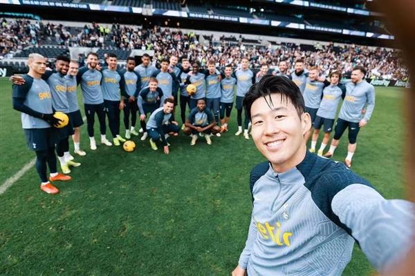 孙兴慜心情非常好,拿手机给全队拍照!他回归热刺后,笑得更开心