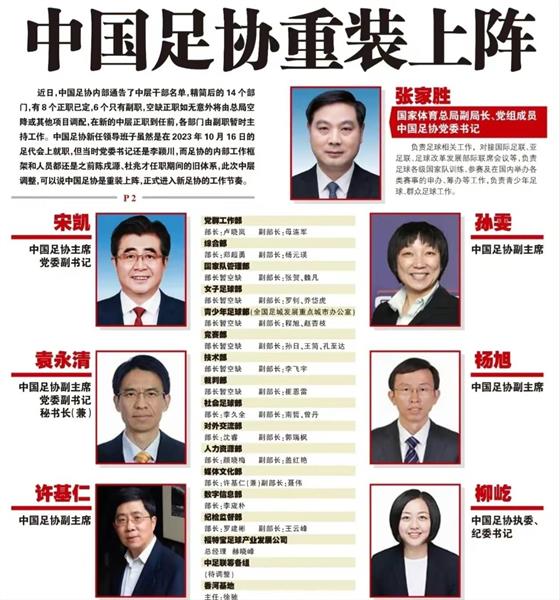 4月22日,中国足球协会宣布了最新领导班子和各部门部长名单。宋凯担任足协主席,张家胜担任足协党委书记。国家队管理部、裁判部、竞赛部等核心部门的部长职位全部空缺,由副部长代行职责。所以,中国足协是宋凯的领导者,还是张家胜的领导者?