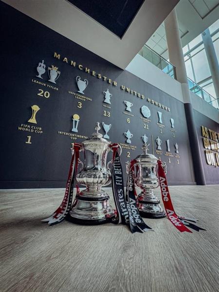 曼联晒出本赛季男队和女队夺得的2座足总杯冠军奖杯,并写道:“老特拉福德的荣誉墙更新啦