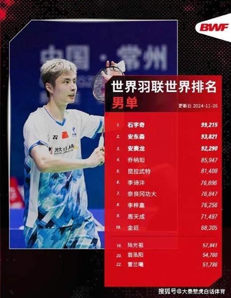 根据相关积分排名,包括世界第一的石宇奇在内,许多高手都进入了本次总决赛的名单。