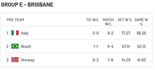 E组义大利击败巴西及挪威,在本组拿到第一晋级。
