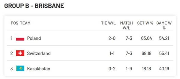 B组波兰靠着球后Iga Swiatek以及Hubert Hukacz领军,在本组脱颖而出。