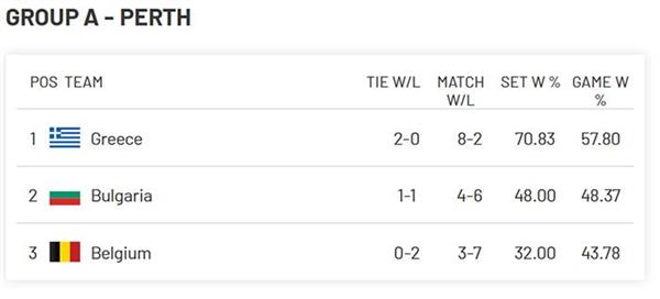希腊队拥有Stefanos Tstsipas以及Maria Sakkari两位top 10选手,星度相当高,以分组第一晋级。