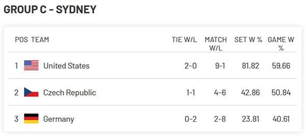 美国队在这次比赛可以说是精英锐出,来了Taylor Fritz、Frances Tiafoe、Jessica Pegula、Madison Keys等明星球员,在本组仅仅输了一场球赛,率先出线。