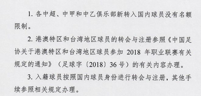 北京时间1月3日,中国足球协会正式宣布了新赛季三级联赛的注册和转会政策。中超冬季转会窗口于1月4日正式开放,外援人数增加,每场比赛可同时安排5名外援首发,但一线队名单仍只有5名外援,如果6名外援注册,一人可能会被租借。