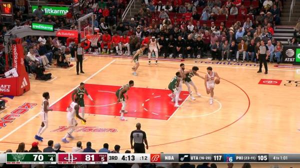 首先是半场过後的变阵,将新秀Jackson拉上先发Beasley下放置板凳,这很明显就是要在防守端下更多的苦功,但是可以看到这反而激起了Sengun更多在轴区去想要单挑Jackson的次数,这位新人在面对对手老练的转身可以说是完全没辙,必须依靠Lopez在篮下的补防才能够挡下Sengun,而後续Griffin则是将Lopez换下来让对手可以继续肆无忌惮地在禁区取分。