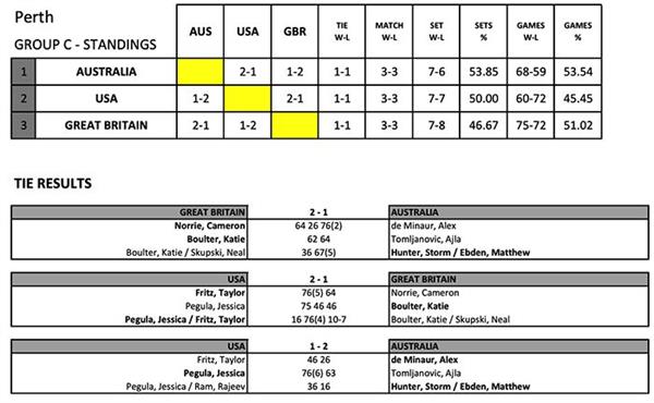 C组三队战绩互咬,都是一胜一败,比较「胜盘率」之後由澳洲以分组第一出线。