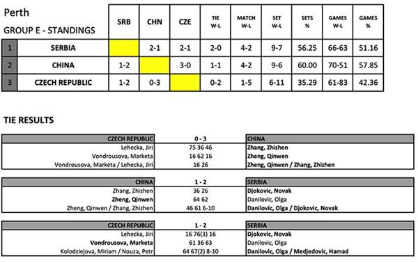 E组塞尔维亚两胜拿下分组第一,中国队分组第二,而且是成绩最好的第二名,同样晋级八强。