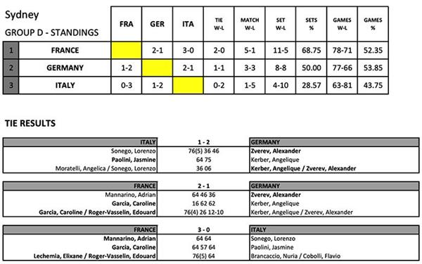 来到四强赛,波兰再度3-0横扫法国队。德国队则是靠着产後复出的Angelique Kerber在躲过好几个赛末点之後击败Ajla Tomlianovic保住一线生机,最後的混双也是激战到第三盘,又再度躲过对手的赛末点之後才在抢十分的「match tiebreak」中以15-13拿下胜利,创下了几乎不可能的逆转。