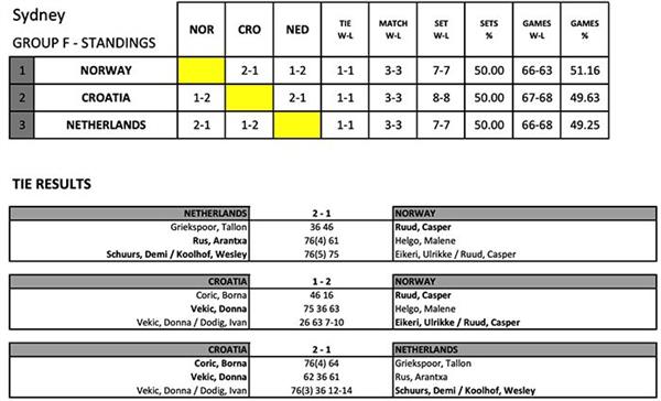 F组三队战绩又互咬,而且「胜盘率」还都一样,最後比「胜局率」之後由挪威拿下分组第一。
