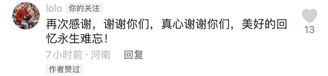 罗歆在此动态下留言道:“再次向你们表达感谢,衷心谢谢你们,感激之情永远难忘!”