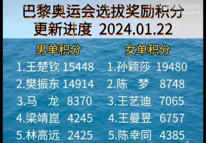 国乒奥运积分更新!樊振东王楚钦获单打名额无忧,团体第三人猜想
