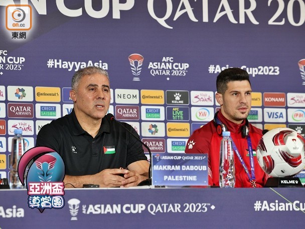 分组赛最後一场以3比0击败港队的巴勒斯坦,以最佳第三名成绩晋级,首次闯入淘汰赛阶段。巴勒斯坦主教练达保出席赛前记招时,表示球队今场没有任何压力:「我哋成功出线,已经达成今届主要目标,今场压力会喺卡塔尔身上。」巴勒斯坦今届亚洲盃,获大批球迷入场支持,为球队攻入今届首个入球的达马,就预计今场看台气氛会非常炽热:「今场会系足球盛宴,相信球迷会为双方球队打气。」