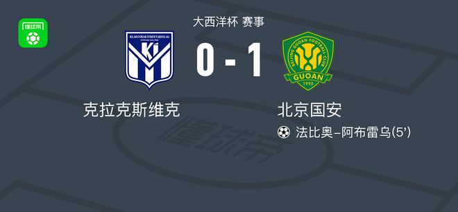 北京时间1月31日大西洋杯 赛事,克拉克斯维克主场对阵北京国安。北京国安法比奥-阿布雷乌破门。最终比分0-1。
