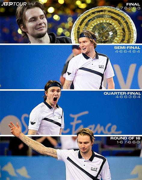 这次Bublik名列大会第二种子,首轮轮空之後,连过四关,而且还创下一项纪录:每场比赛都在先输一盘情况下逆转,最後夺冠,非常难得的纪录。尤其第二轮对上加拿大选手Denise Shapovalov第二盘挽救了对手四个赛末点,辛苦抢下抢七,接着第三盘逆转。决赛对上Coric也是先以5-7掉了第一盘,後面再强势逆转,意志力相当坚强,用非常黏的打法让对手无力持续加压。