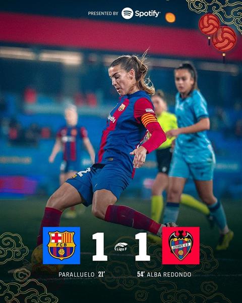 巴萨女足遭莱万特女足逼平,主场70连胜&本赛季开局16连胜遭终结