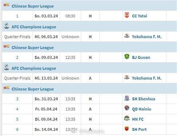 泰山队将在亚冠1/4决赛中迎战横滨水手队,首先于3月6日主场比赛,然后在3月13日前往客场挑战对手。