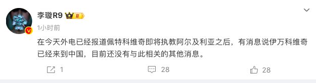 2月21日晚间,著名媒体人李璇在社交媒体上爆料称,备受关注的国家足球队新主教练人选伊万科维奇已经抵达中国,据称他可能是来争取执教国家队的新职位。