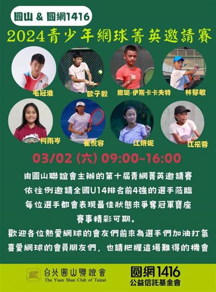 2024圆山青少年网球菁英邀请赛 即将热烈开打!
