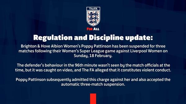 赛后,由于暴力举动,英格兰足球协会对帕丁森做出禁赛3场的额外处罚。