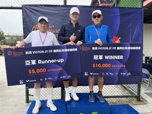 70岁男单冠亚也在今天产生,70岁组冠亚赛中,孙晟展以6-3拿下首盘,第二盘赖博以6-3相同比数回敬孙晟展,在经历刺激的第三盘後,最终由孙晟展夺下冠军,顺利抱回奖金1万元,而亚军赖博获得5000元奖金。