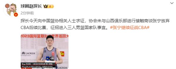 中国篮协之前与山西男篮传出接触一事,要求张宁放弃本赛季CBA后续比赛,这一事件在篮球圈内也引起了广泛关注。据媒体人“球圈赵探长”报道称:“经过向中国篮协相关人士求证,协会并未与山西俱乐部就张宁放弃CBA后续比赛、入选三人男篮国家队等事项进行接触商谈。”传闻得到澄清后,许多球迷都松了一口气,因为张宁作为山西男篮后场的关键球员,他的缺席将给球队带来巨大影响。