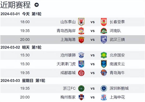 3月1日晚上8点,中超2024赛季的首轮比赛就要上演一场强强对话。卫冕冠军上海海港将在主场迎战2022赛季的冠军武汉三镇,本场比赛将由央视CCTV5进行现场直播。