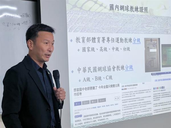 国立体育大学体育保健系张维纲专任副教授(左) 讲解「保护网球伤害」