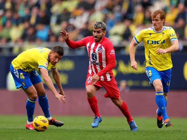 马德里体育会将於周四(14日)凌晨欧联16强次回合生死战主场对国际米兰,但为咗抢分追赶榜首皇马,教练施蒙尼今场联赛仍然派出强阵。不过,马体会整体表现患得患失,上半场24分钟被卡迪斯前锋桑美占美利斯顶入大门。