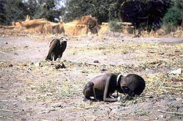 一张秃鹰在後头虎视眈眈的盯着不远处瘦骨嶙峋、艰难爬行的小女孩,震惊全世界并获得普立兹奖的照片,正是出自这个时期的南苏丹。