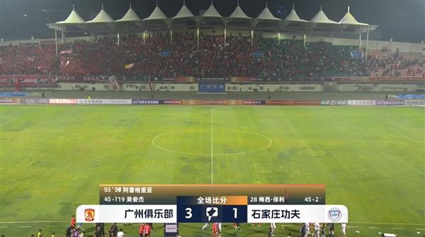 当比分进入伤停补的时候,就在很多球迷认为双方都要战平的时候,阿雷格里亚先是用身体把球压进了客队的球门,把比分变成了2-1。然后在比赛的最后一分钟,他在守门员解围前挑了球,然后冷静地把球传进了球门。最终广州队3-1击败对手,报告了去年被双杀的“悲伤”。