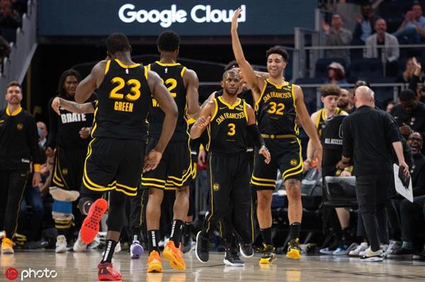 勇士队首发:乔纳森-库明加、安德鲁-维金斯、斯蒂芬-库里、德雷蒙德-格林、布兰丁-波杰姆斯基