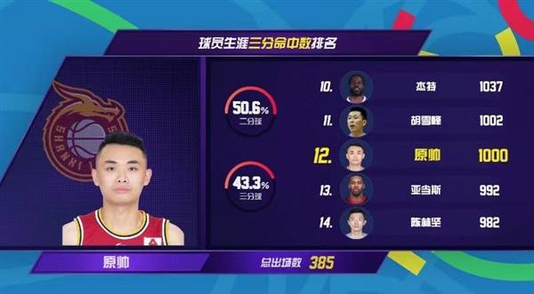 2013年1月25日,原教练的三分生涯开始了。他在职业联赛第七场代表辽宁衡业对阵江苏南钢的比赛中投了两个三分球,从此开始了三分球账户。2021年1月7日,原教练代表山西汾酒对阵辽宁本钢的比赛也投了两个三分球,让他的三分球命中率上升到500个。截至目前,原教练三分球总数在CBA联赛历史上排名第12,距离第11名胡雪峰还有2个,距离第10名杰特还有37个。