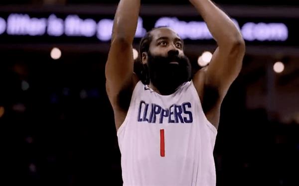 半场过后,快船51-56落后,哈登5投1中,得到6分7助攻。下半场开始后,哈登的进攻欲望依旧不强,当乔治吸引两人包夹,哈登在弧顶处于完全空位时,“不得不”出手三分,依旧打铁。