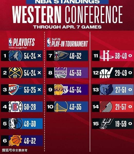 季后赛名额争夺战:西部6队竞逐悬念十足!