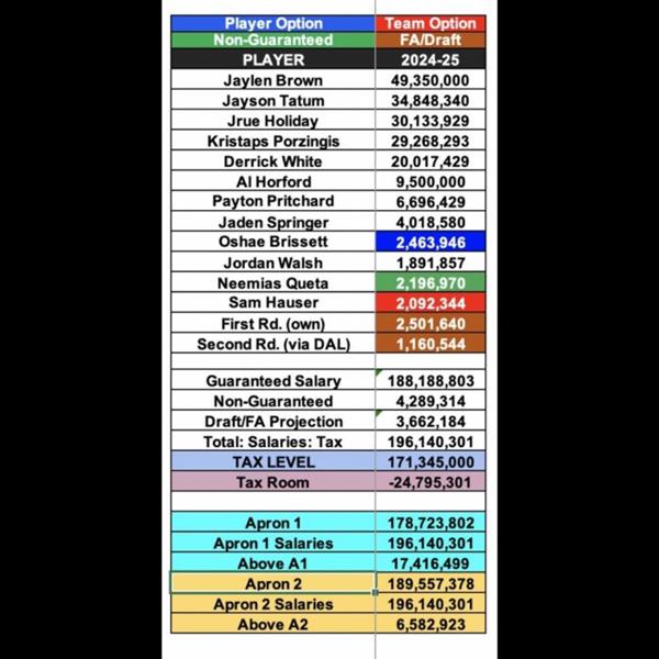 由于Holiday跳出了明年的球员选项,新合同的第一年工资将减少约7M,这将大大降低奢侈品税,而且没有工资条款。与Porzingis新约相结合,同样可以降低工资,让Brown的工资跳级不会让团队工资爆炸。与快艇、勇士队或太阳队有几个超级顶薪不同,考虑到明年的最高工资水平,我们仍然可以依靠基本工资、第二轮或双向填补板凳。