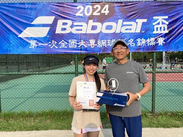 中华民国网球协会秘书长王凌华(右)颁奖公开组女单季军王芸凌