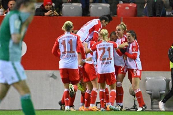 4月23日消息,本轮德国女子足球甲级联赛,拜仁女足以3比0战胜不莱梅女足,目前领先7分,领跑联赛,并且只需再赢一场比赛就能成功卫冕。