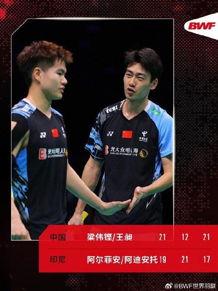 在男子双打比赛中,中国队的三号种子梁伟铿/王昶经过1小时06分钟的激烈对决,进行了三场比赛,最终以2-1(21-19/12-21/21-17)战胜了印尼队的六号种子组合阿尔菲安/阿德里安托,成功晋级国羽男双4强,成为唯一一支晋级的中国队。