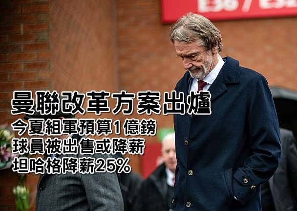曼联可能会继续在坦哈格教书一年以上,直到明夏合同结束。坦哈格必须接受25%的减薪,年薪从900万英镑减少到675万英镑(约8800万至6600万港元)。然而,如果仲系坦先生教书,曼联在来个赛季的表现非常有限。