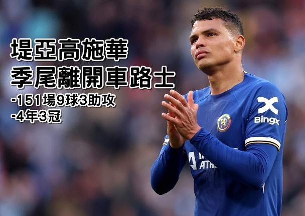 车路士官方网站周一(29日)宣布,39岁的巴西中坚堤亚高施华在本赛季结束后离开球队,结束了他四年的蓝军生涯。在他的工作期间,他为车路士赢得了欧洲联盟和欧洲超级联赛。