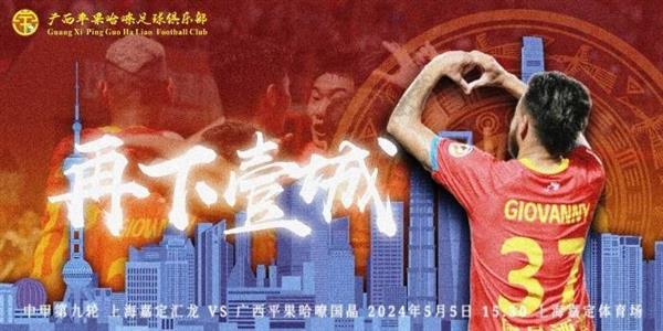 2024年5月5日15:30,上海嘉定汇龙将在上海嘉定体育场迎战广西平果哈嘹国晶,这是中甲联赛第九轮的比赛。