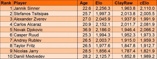 Power2024法网男单前十名Ranking排名前十。