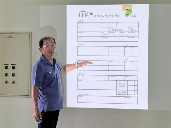 同样由中华民国网协会秘书长和ITF国际网球总会裁判组长王凌华教授的最后一堂讲座「主审实务网球规则(计分卡)」,SCORECARD在网球比赛中非常重要。通过计分卡,我们可以知道如何进行每一个球,球员是否在球场上犯规,换球数量等。王凌华先生给裁判们举了很多SCORECARD实际比赛的例子,让裁判们解释每一个笔记的意义。通过与裁判的沟通和问答,课程变得生动有趣,同时也可以从中学习新知识。