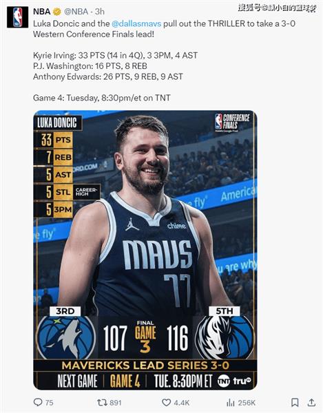 据美国媒体StatMamba报道:唐斯在西部决赛中的三分球命中率为13.6%,在NBA历史上是分区决赛中最低的之一,唐斯创下了这一耻辱性纪录。