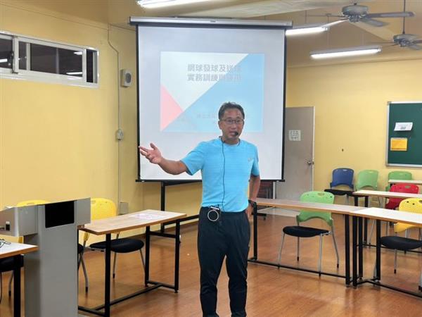 尾声课程「正反手拍,截击实践训练与应用」教练们搬到球场上熟悉科技测试项目。现任台北市文林国小网球专任教练石家玮教练分享考试技巧和建议,协助准A级教练现场练习模拟科技测试。
