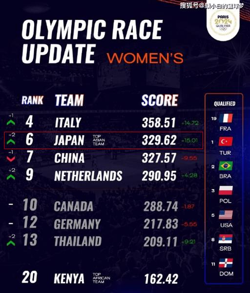 日本媒体《The Digest》写道:最新的世界排名决定了日本女子排球队巴黎奥运会的良好前景已经超过了中国,中国媒体对她们的排名感到失望,中国媒体认为日本女子排球队超越了亚洲的第一个差距太大了。