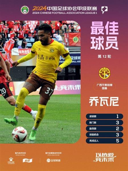 六月五日消息,第十二轮联赛结束后,中甲官方宣布了广西平果哈响外援乔瓦尼这一轮的最佳球员。在评审委员会的专家投票中,乔瓦尼获得了7张第一顺位选票,以98分当选。