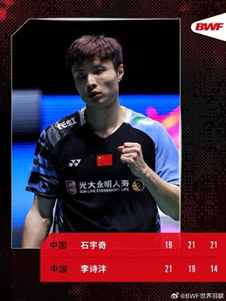 最后,经过三场艰苦的战斗,石宇奇击败了李诗邈进入决赛。三局分别为:19-211、21-19、21-14。