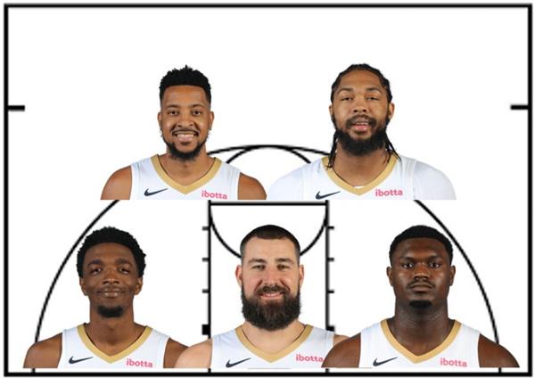 本文分析了鹈鹕在今年选秀会和自由球员市场签约前的补强方向。下面分为三个部分。第一部分,我们来谈谈Williamson。为什么鹈鹕还是以他为核心打造阵容?作者可能会提供新的观察方向。第二部分讨论鹈鹕现有阵容,谁会留下来,谁该走;第三部分讨论鹈鹕可以考虑哪些交易,以及哪些适合自由球员的目标。提前说一个简单的结论。(刚结束的)本赛季初,鹈鹕的先发阵容如下图所示。